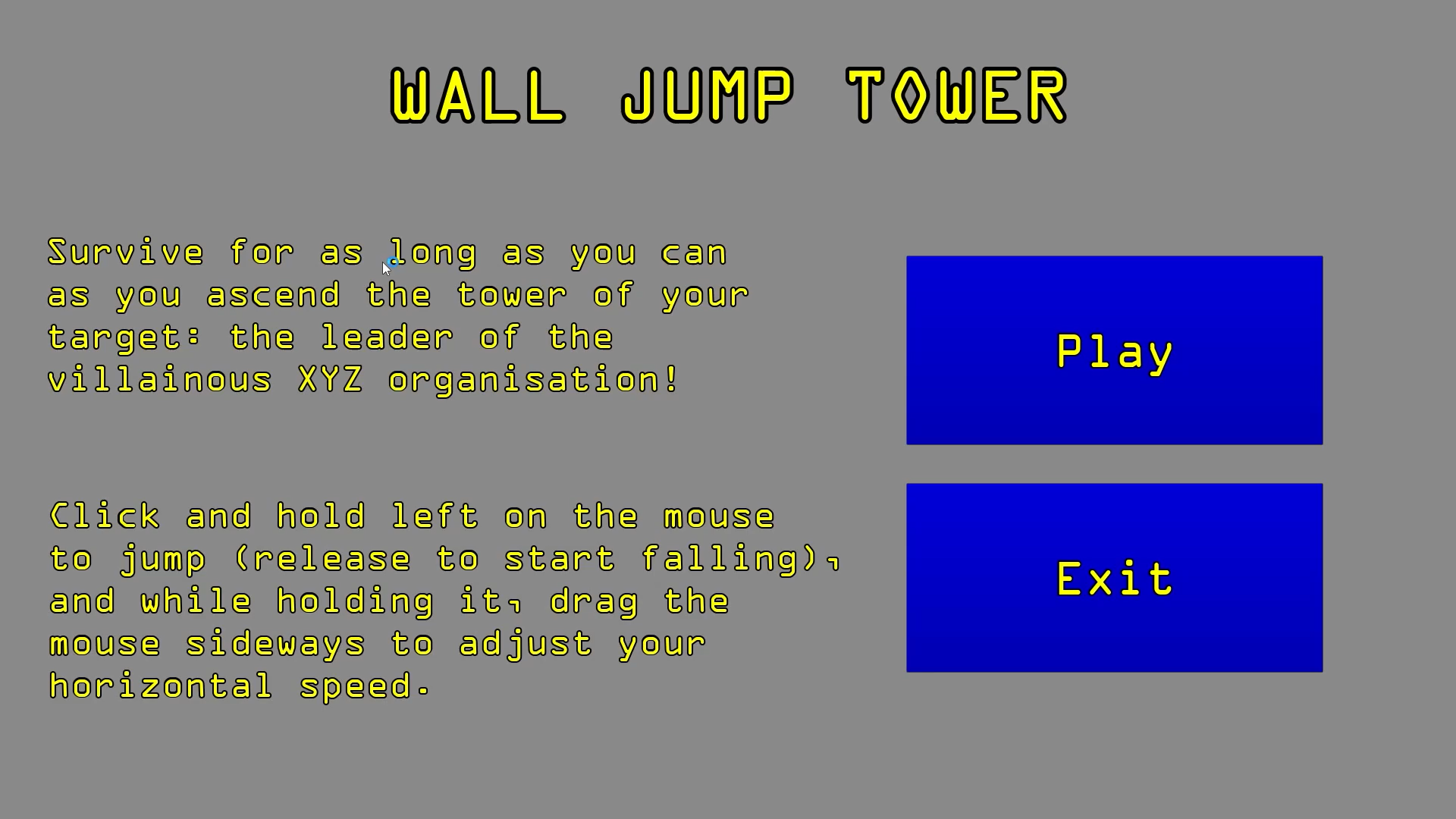 An endlessly scrolling wall-jumping game made for my first unit of my second year on the Games Development course. I was tasked with creating a "hyper-casual" game with basic controls and simple, yet addicting gameplay, somewhat akin to a standard mobile game. What I ended up creating was an endlessly vertically-scrolling game where you slide down walls, click/tap to jump off of them and drag the mouse/your finger around to change your trajectory mid-jump, and must survive and avoid hazards for as long as possible to get a high score. I was able to use what I had learnt that unit about using C++ in UE4 game development to pull off some remarkable programming feats, such as the illusion of an endlessly scrolling backdrop, as well as hazards that are picked at random and spawned in random positions on each wall.